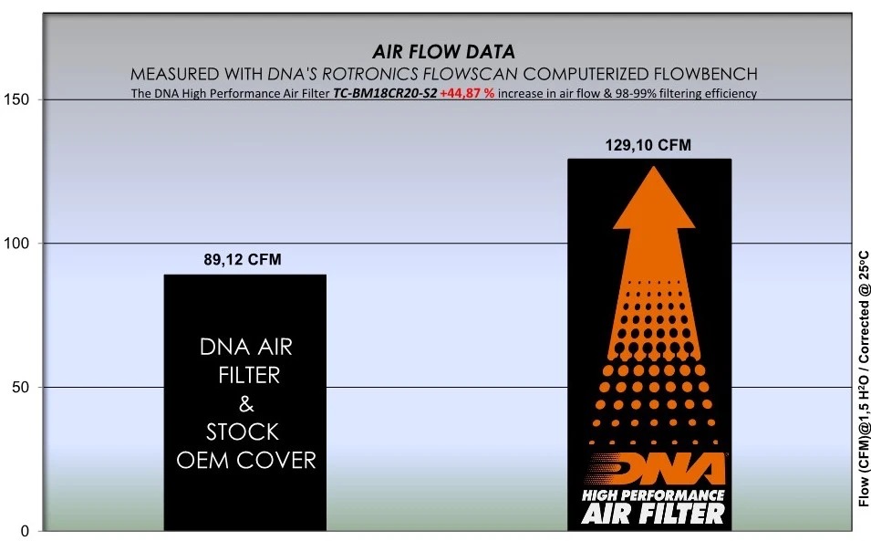 In Verbindung mit dem passenden DNA Stage-1-Luftfilter (separat erhältlich) verbessert sich der Luftdurchsatz deutlich. Das Ergebnis ist ein direkteres Ansprechverhalten, eine harmonischere Leistungsentfaltung sowie ein sportlicher, präsenterer Ansaugsound. Die bewährte DNA-Filtertechnologie sorgt dabei weiterhin für eine zuverlässige Filterwirkung.